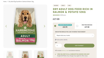 By choosing a Harringtons subscription, you’ll be able to enjoy up to 15% discount off RRP on every pet food order.